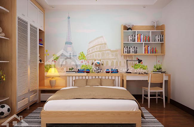 1.Một phòng ngủ ấm áp với tông đất dành cho trẻ em